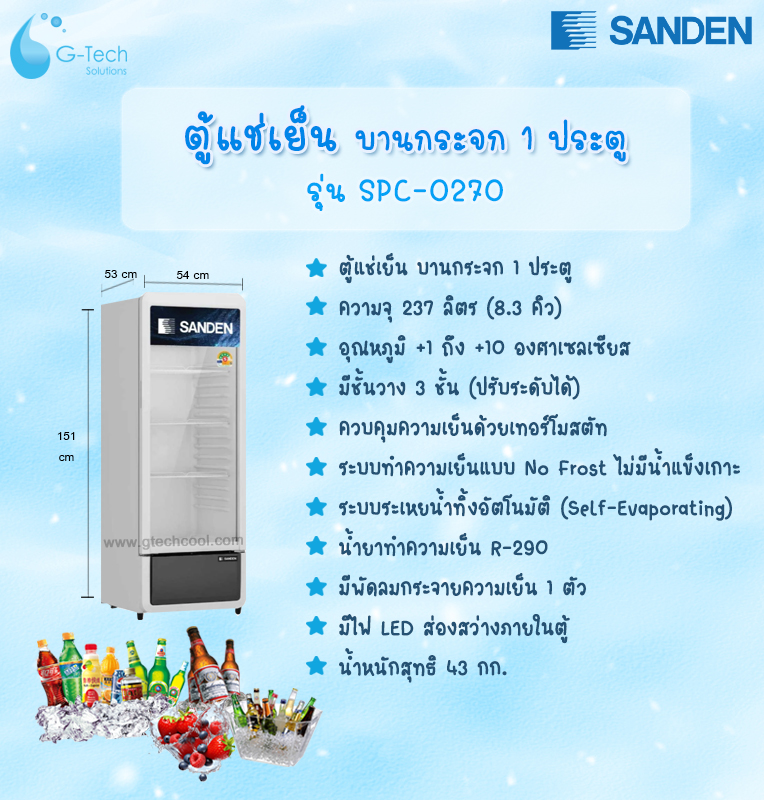 ตู้แช่เย็น บานกระจก 1 ประตู รุ่น SPC-0270